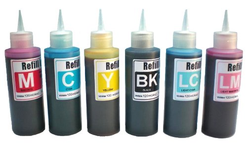 - 6 bottles/ set, Black, Cyan, Magenta, Yellow, Light Magenta, Light Cyan