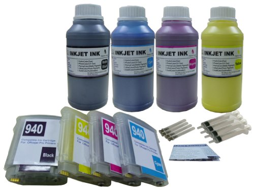 NDTM Brand Dinsink: 4 Pack US Patent HP 940 940XL pigment Refillable ink Cartridges with Chips + 4x10oz Premium Pigment refill ink kit for HP OfficeJet Pro 8000 8500 8500a Printer. The item with ND Logo! Review