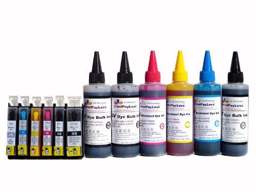 Manufactured by ISO 9001 certified factory. You will receive 6 packs of Pre-Filled, Refillable Ink Cartridges compatible with Canon PGI-225 CLI-226 Ink PLUS 6 bottles x 100 ml (3.3 oz)/each in Black, Black, Cyan, Yellow, Magenta, and Gray / Grey color Bulk Refill Dye Ink special formulated for Canon.The refillable ink cartridges come with Auto Reset Chips (ARC). No Resetters are needed. The cartridges/chips can be used over and over again. They can be used in Canon Printers:PIXMA MG6120 Wireless, PIXMA MG8120 Wireless, PIXMA MG8120B Wireless, PIXMA MG8220, PIXMA MG6220.You will not just save cost on ink and ink cartridges! You can also save our limited energy and resources, save our environment and earth.Why Pay More? Print Pay Less!With Auto Reset Chips (ARC)! PrintPayLess® Brand 6 Pre-Filled Refillable Ink Cartridges for Canon PGI-225 CLI-226(non-OEM) + 600ml (20 oz.) PrintPayLess® brand UV resistant dye-based Refill Ink Special-Formulated for Canon PIXMA MG8220, PIXMA MG6220 Printers, in the Colors of: Black, Black, Cyan, Magenta, Yellow, and Grey/Gray Feature